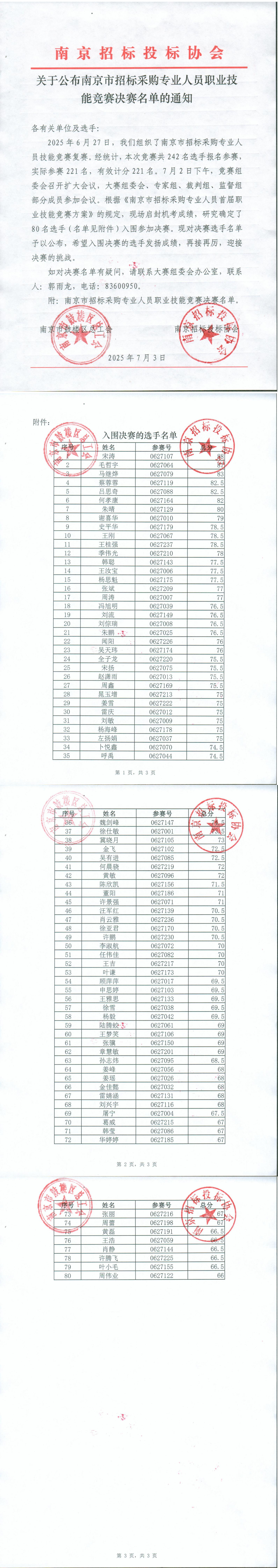 心博网页版公布南京市招标采购专业人员职业技能竞赛决赛名单的通知